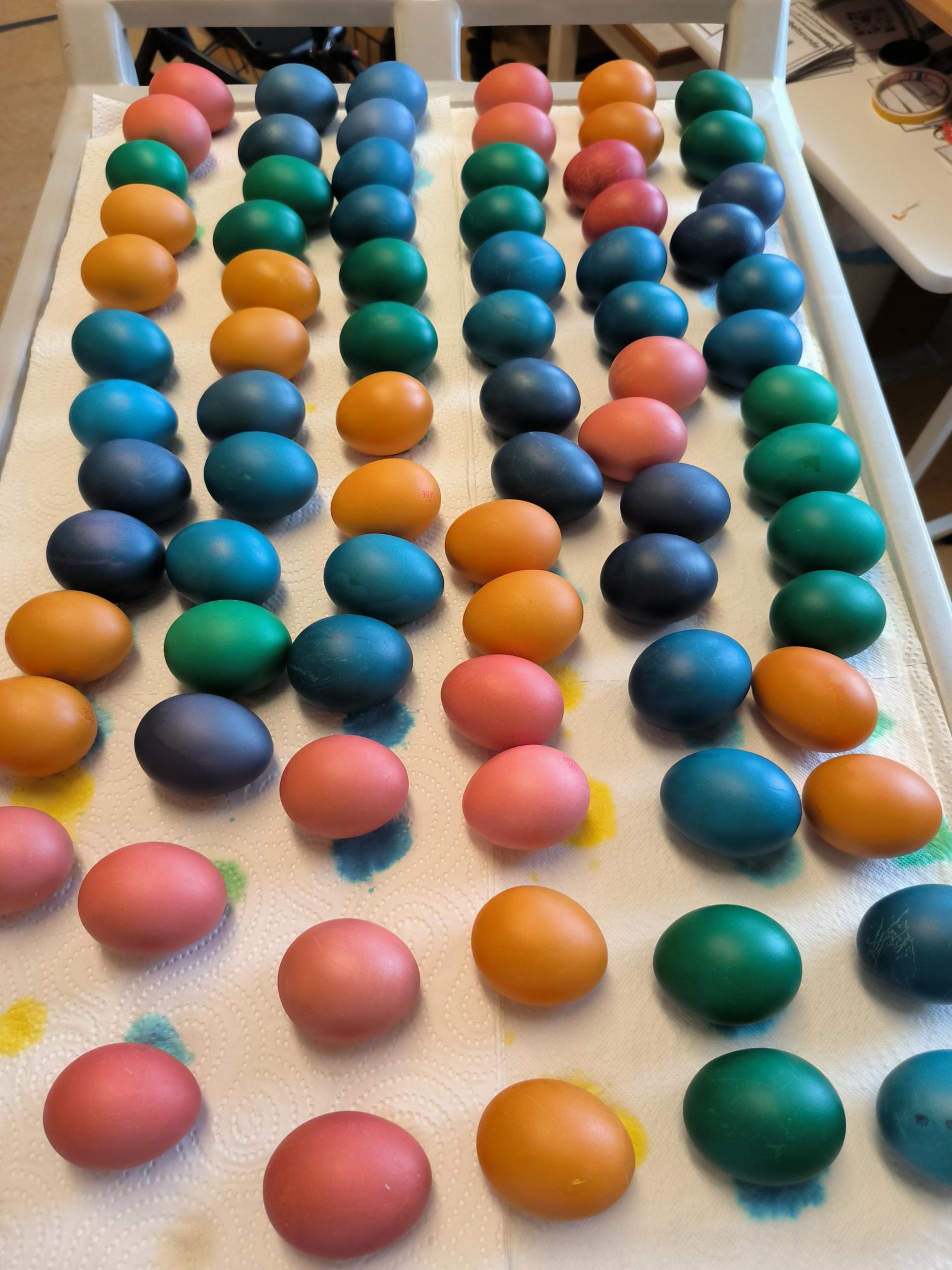 Ein Highlight jedes Jahr ist natürlich das Eier färben und verzieren. Mit viel Freude werden die Eier bunt gestaltet - ob klassisch gefärbt oder kunstvoll marmoriert, dabei entstehen kleine Kunstwerke, die sich sehen lassen können.